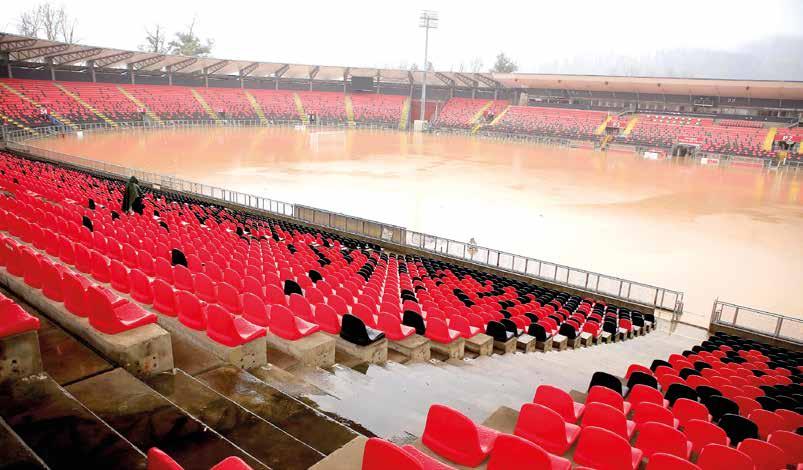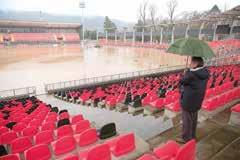 El desborde del río Claro llegó incluso hasta el interior del Estadio Fiscal, dejando a la cancha de fútbol convertida en una gran piscina de agua turbia.
