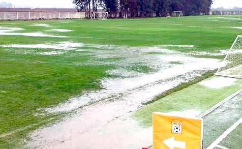 La cancha de fútbol del Estadio Fiscal quedó bajo el agua con el desborde del río Claro.