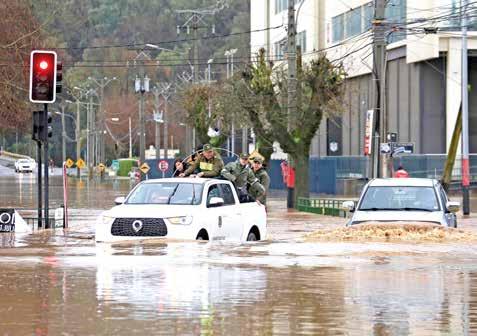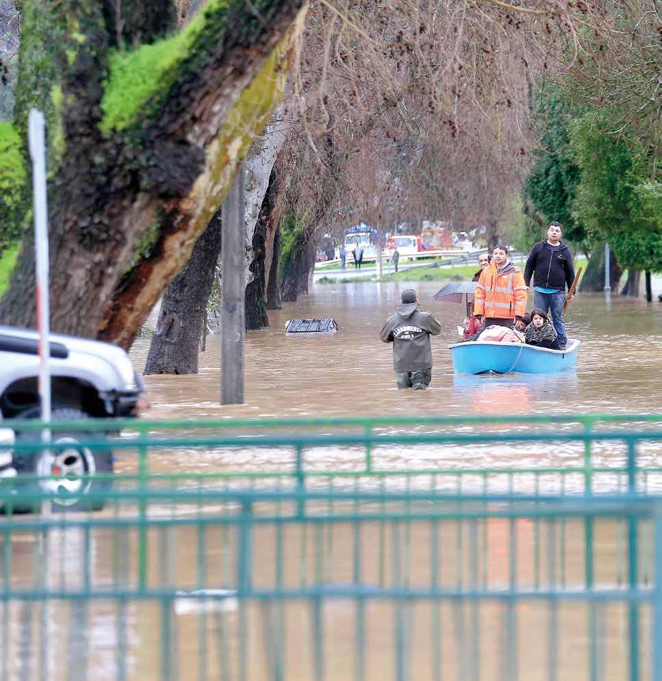 “A los menos cinco personas, de las cuales hay un adulto mayor, pernoctaron durante la noche (domingo). Nosotros vamos a seguir desplegados en el territorio y anda un equipo en el sector de Upeo, donde también hubo un socavón profundo y estábamos verificando el estado del tránsito”, apuntó. Una de las situaciones más complejas al cierre de esta edición se presentaba en San Martín de Las Piedras, con desbordes de canales y anegamientos, afectando a numerosas viviendas. Por lo mismo, sus habitantes se trasladaron o fueron trasladados a casas de familiares. Como se recor-