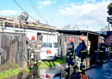 estructural que afectaba a tres viviendas de la Población Diego Portales de esta ciudad. Pese a la complejidad del siniestro el rápido actuar de los voluntarios de las compañías de Bomberos que llegaron al lugar, evitó que las llamas des -