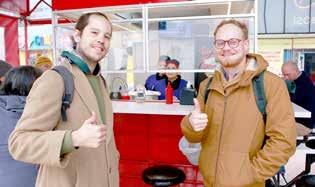 Un acompañante chileno junto al francés Frederick Duo, disfrutaron de los completos talquinos, expresando que fue una buena experiencia, mucho mejor a los que probó en Santiago.