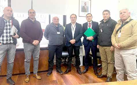 CURICÓ. El alcalde Javier Muñoz, junto a los presidentes de las Juntas de Vecinos Sarmiento y Unidos por Sarmiento, Juan Martínez y Carlos Ortúzar, respectivamente, y el presidente de Villa Parque Los Guindos, Fernando Inostroza; se reunieron este jueves en Santiago con autoridades nacionales, entre ellos Horacio Pfeiffer, director de Vialidad; Pamela Godoy, gerente de Clientes y Desarrollo de Nuevos Negocios de la Empresa de Ferrocarriles del Estado; y Milo Millán, jefe de la División de Cauces y Drenaje Urbano. Estos encuentros, gestionados por la senadora por el Maule, Paulina Vodanovic, permitieron abordar temas cruciales para el desarrollo de la localidad.