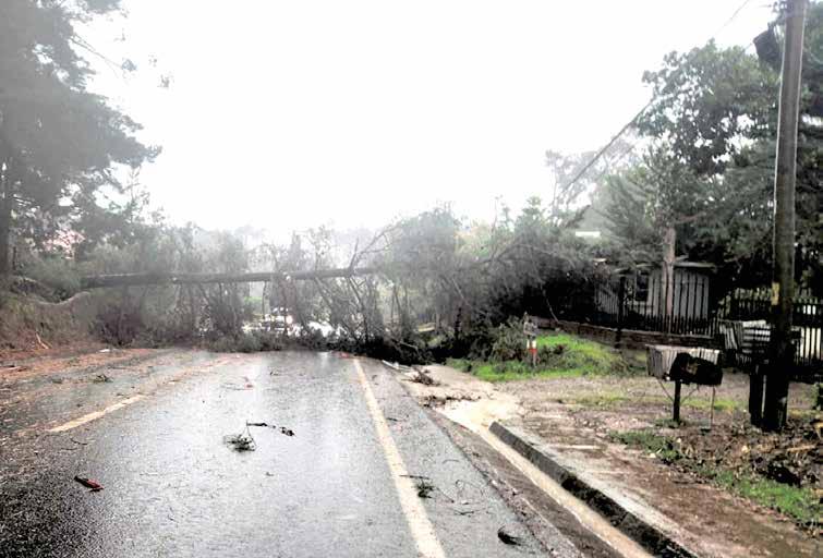 Fuerte viento y lluvia. El desplome de un grueso árbol en el camino conocido como Las Conejas obligó a suspender el tránsito. Temporal hoy abarcará a toda la Región del Maule. | P19