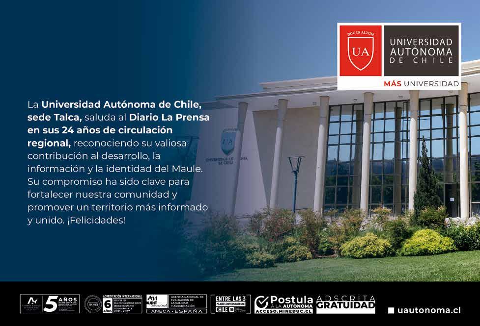 La Universidad Católica del Maule saluda con especial afecto a Diario La Prensa en su 24° aniversario de circulación regional, destacando su valioso rol en la entrega de información oportuna y veraz a la comunidad maulina.