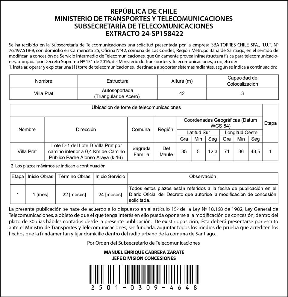 sario Aida De Las Mercedes Yáñez Schafer. Fecha 10/07/2024 15:13 UTC-4. Hay firma electrónica. – MANDAMIENTO. Mandamiento: “Talca, diez de Julio de dos mil veinticuatro. Un Ministro de Fe requerirá de pago a don MANUEL ENRIQUE YÁÑEZ DEL PINO, con domicilio en LOS PATOS SUR 295, MAULE; LOS PALTOS A 205, MAULE; Y/O 21 PONIENTE C 847, TALCA ½ , en su carácter de suscriptor, para que en el acto de su Intimación pague a BANCO DEL ESTADO DE CHILE, o a quien represente a dicha entidad, la suma de 973,157741 Unidades de Fomento, equivalentes al día 05 de junio de 2024 a $ $36.463.287, por concepto de capital del pagar individualizado en la demanda, más intereses y costas. Si no lo hiciere en el acto de su intimación, trábese embargo en bienes muebles e inmuebles que sean de propiedad del demandado, para atender el entero y cumplido pago del capital adeudado, más intereses y costas. Designase a proposición de la parte ejecutante y bajo su exclusiva responsabilidad, depositario provisional de los bienes que se embarguen por ahora, al propio ejecutado, los que quedaran en su poder bajo su responsabilidad tanto civil como penal. Así esta ordenado en los autos Rol C-17552024, sobre juicio ejecutivo, de í á este Primer Juzgado Civil de la ciudad de Talca, caratulado “BANCO DEL ESTADO DE CHILE con YAÑEZ”. - Rosario Aida De Las Mercedes Yáñez Schafer. Fecha 10/07/2024 15:13 UTC-4. Hay firma electrónica. - A folio 37, el ejecutante solicitó notificar y requerir de pago al demandado por medio de avisos extractados, señalando diarios que deberán hacerse publicaciones y número ellas, sin perjuicio correspondiente en Diario Oficial.
