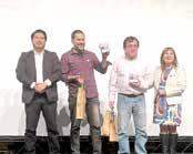 Historia. El escritor Leonardo Salazar compartió sus impresiones sobre su obra que aborda los 50 años de vida del club Curicó Unido. Danilo Díaz y Cristian Arcos también fueron parte de las exposiciones realizadas en el teatro.