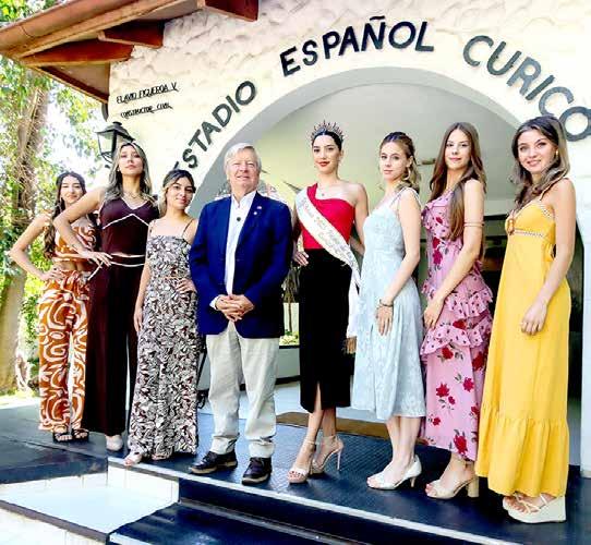 SEIS POSTULANTES. La actividad se realizó ayer en el Estadio Español, instancia que reunió al alcalde de Curicó, George Bordachar; a las jóvenes postulantes; y a la actual reina de la Vendimia 2025, Krishna Galindo. | P20
