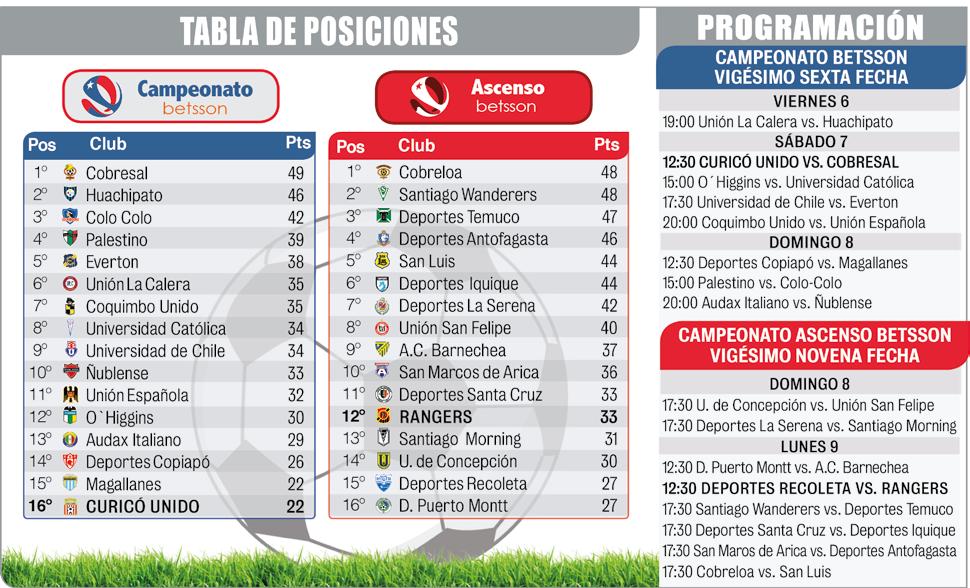 En todo caso, antes de medirse con Cobreloa, el cuadro de Rangers debe enfrentar de visita a Recoleta, en encuentro previsto para el lunes 9 de octubre.