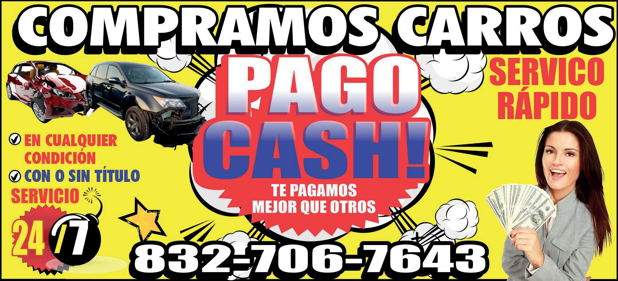 ¿Dinero por su auto chatarra? Compramos su auto en cualquier condición. Pago en efectivo 281-662-1888.
