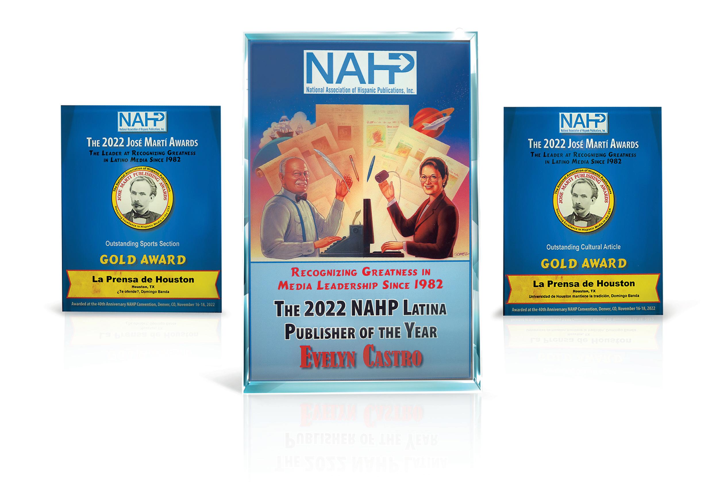 La Asociación Nacional de Publicaciones Hispanas (NAHP) celebró sus 40 años de aniversario en una convención donde nuestro periódico La Prensa de Houston recibió varios reconocimientos, nuestra Vice-presidenta, Evelyn Castro, recibió el premio como “La Editora Latina del Año 2022”.