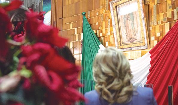 La primera dama de Estados Unidos también llegó a México, fue recibida por Beatriz Gutierrez Muller, primera dama mexicana. Una de sus primeras actividades fue visitar la Basílica de la Virgen de Guadalupe donde encendió una vela e hizo oración.