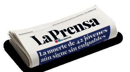 La veracidad de la noticia en tu idioma 7100 Regency Square Blvd., Suite 217 • Houston, TX 77036 Lunes a Viernes 9am - 5pm CST 713-334-4959 info@prensadehouston.com WWW.PRENSADEHOUSTON.COM prensadehouston La rensa DE HOUSTON @PrensadeHouston @laprensadehouston La Prensa de Houston EDITOR DE CONTENIDO: Domingo Banda. Domingo@prensadehouston.com DIRECTOR GRÁFICO: Antonio Salazar M. Antonio@prensadehouston.com PERIODISTAS: Alba Romero, Estefanía López, Miguel Mejia H.