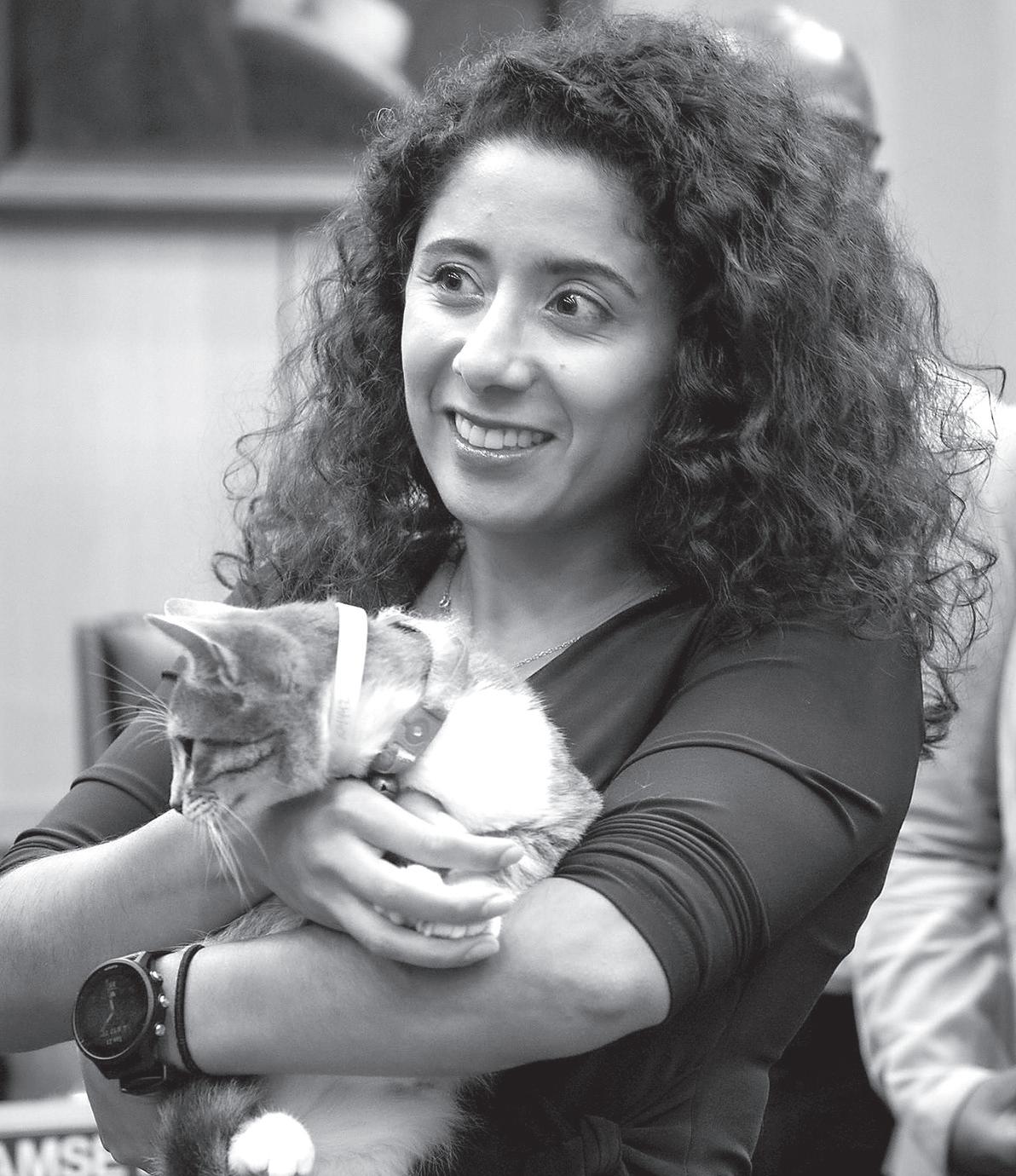 La jueza Lina Hidalgo con un amigo especial Hace unos días la jueza del condado Harris, Lina Hidalgo, posó con este gatito para recordar a la comunidad que lleven a sus mascotas a ponerles el microchip por si estos se extravían. Información en CountyPets.com.