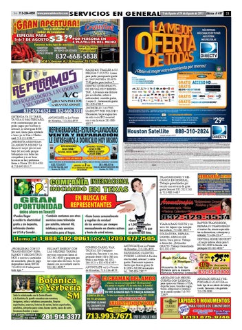 HACEMOS TRAILER A SU MEDIDA Y GUSTO, Llame para pedir presupuesto gratis al 214-924-0760 o 281-6797740 partes para trailers.* CENTRO QUIROPRACTICO DE SALUD Y BIENESTAR , Aliviamos sus dolores por accidentes, estrés o enfermedad, consulta gratis, 2 rayos X , tratamiento gratis 281-829-6700.* ¡INCREÍBLE! 2 AUTOS LIABILITY POR SOLO $55 Mensuales, bajos enganches un solo carro $33 mensual con o sin licencia 281-8884307.*