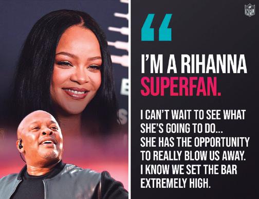Es uno de los anuncios más esperados cada año, se tra ta de quién va a cantar en el medio tiempo del partido del Super Tazón. El 2023 será Ri hanna la encargada de traer el toque musical a ese evento deportivo.
