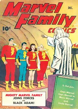 La primera vez que apareció “Black Adam” en un comic fue ne 1945 y enton ces pertenecía a Mar vel en una serie de Fawcett Comics. No fue hasta la década de los 70 que los per sonajes de Fawcett pasaron a ser parte de DC Comics.
