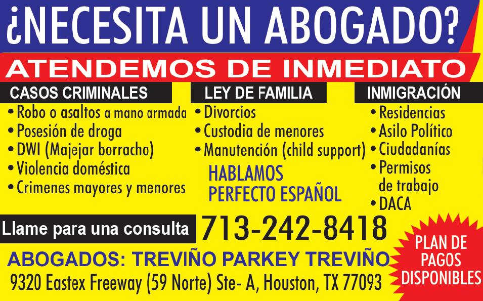 HOUSTON, TEXAS DEL DEL 31 DE MARZO AL 6 DE ABRIL DE 2024 • EJEMPLAR GRATIS • NO. 1155 WWW.PRENSADEHOUSTON.COM ABOGADOS THE BROWN LAW GROUP, P.L.L.C INMIGRACIÓN Y CASOS CRIMINALES •ASILOS •DEPORTACIONES •PETICIONES 713-588-0548 OFICINA PRINCIPAL 6300 RICHMOND AVE., SUITE 201 HOUSTON, TX 77057 CLAUDIA PASILLAS ATTORNEY AT LAW CONSULTA GRATIS AYUDA FINANCIERA DISPONIBLE # Cómodos & Flexibles Horarios Clases de Día & Noche # Instructores Calificados # Diferentes métodos de pagos 213 West Southmore Suite 101 Pasadena, TX 77502 713-903-7092 16801 Greenspoint Park Dr. Suite 150 Houston, TX 77060 832-280-1655 2950 South Gessner Houston, TX 77063 281-501-7862 APRENDER INGLES ES FACIL AYUDA FINANCIERA DISPONIBLE PARTICIPANTES BUSCAMOS PARA ESTUDIO DE ASMA SE PAGA POR TIEMPO Y VIAJE MEDICAMENTOS PARA ASMA SIN COSTO TEST DE FUNCIÓN DE PULMÓN SIN COSTO SI CALIFICAS PUDES GANAR EN 4 SEMANAS $600 TELÉFONO O TEXTO AL: 361-210-7869 DE HOUSTON La rensa 832-232-4655 CAMBIO PLACAS TÍTULOS Y STICKERS 6201 Bellaire Blvd, Houston tx 77081 Accidentes de auto y camión Divorcios Manutención de menores Custodias Casos de inmigración Casos penales Delitos y delitos menores 6420 HILLCROFT ST SUITE 106, HOUSTON, TX 77081 SU CONSULTA SERÁ: GRATIS Abogada SE HABLA ESPAÑOL 713-334-7200 EMILY RODRIGUEZ ASISTENTE LEGAL VALENTINA ORONSAYE ¡Nuevos pacientes bienvenidos! Inscríbase para nuestros eventos comunitarios GRATUITOS: Obtenga su examen anual de bienestar de Medicare, la vacuna Covid-19 y toda la atención que necesita de un equipo que realmente se preocupa. Llame al (713) 814-3655 o obtenga más información en: LegacySeniorPrimaryCare.org Bastaron unos segundos para que el puente Francis Scott Key Bridge, una vía principal en Baltimore, se derrumbara luego de que un barco carguero chocó contra este. Hasta el momento se presume que 6 personas murieron. Especial■■ PÁG 16. Es tiempo de buscar los huevos de Pascua. Te decimos dónde hay festivales. Locales■■ PÁG 4. Comunidad■■ PÁG 5. Noticias■■ PÁG 2. El caso de una niña ahogada en la piscina de un hotel. Vivir cerca de restaurantes de comida rápida puede dañar su corazón.