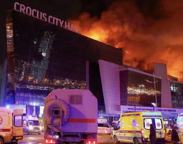 Un grupo de hombres armados irrumpieron en Crocus City Hall, en Krasnogorsk, un suburbio del norte de Moscú y dispararon contra el público. Unas 6,000 personas estaban en un concierto de rock. Además de disparos, los atacantes causaron incendios en el recinto. Se reportaron unos 139 muertos en este incidente. Cuatro hombres fueron arrestados por este hecho, que según el Estado Islámico se adjudicó. Incluso cuando aparecieron en la corte los arrestados aparecieron con signos de violencia.
