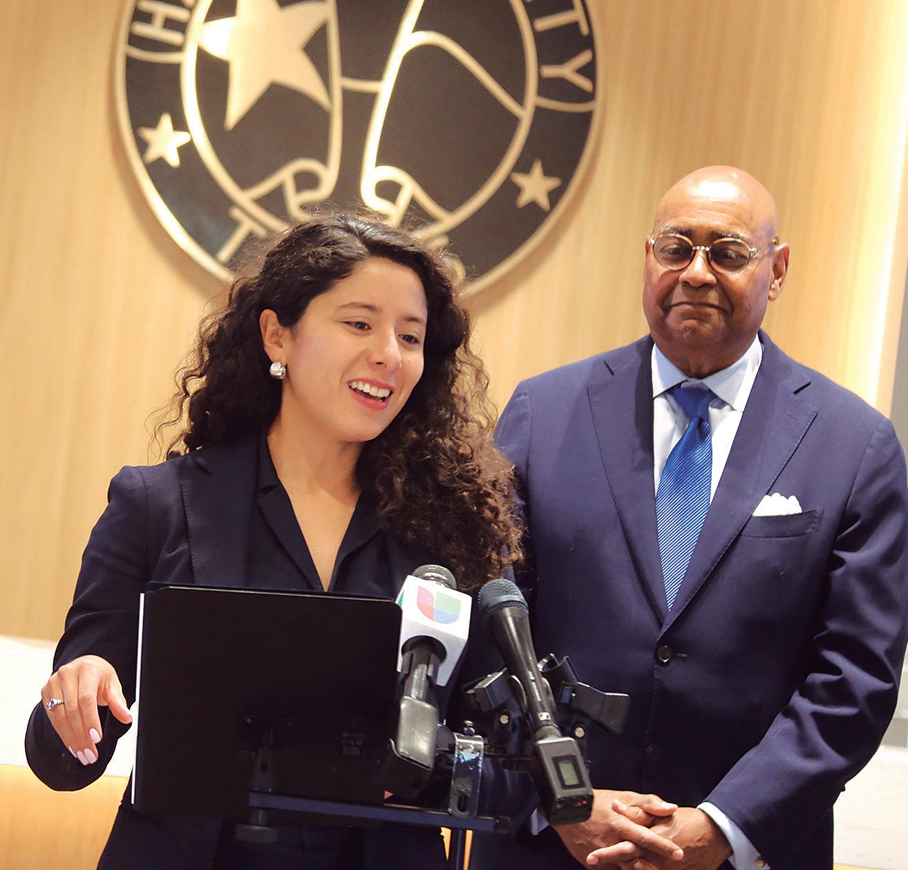 “Trajimos la Corte de Comisionadas más cerca a los residentes del condado, antes estaba en el noveno piso. Ahora está en el primer piso y con 120 espacios, además con espacio para los medios de comunicación que antes no tenían”, dijo Lina Hidalgo, juez del condado, durante la presentación de la nueva corte. Las reuniones de la Corte de Comisionados se realizan cada martes y los miembros del público pueden