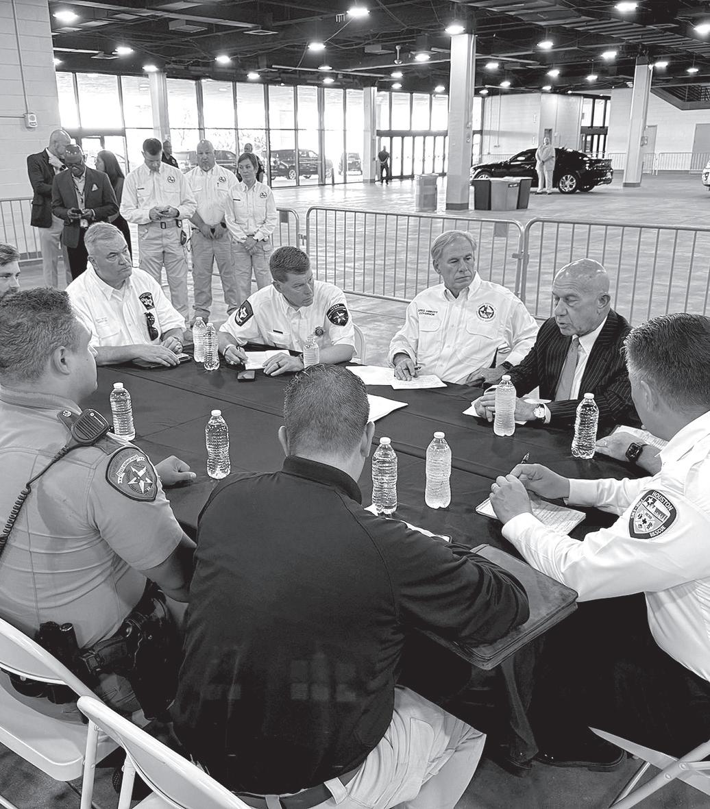 El jefe de policía interino de Houston, Larry J. Satterwhite, recibió personalmente a los más de 100 oficiales que llegaron desde otras ciudades para apoyar al departamento local, luego del paso del huracán Beryl.
