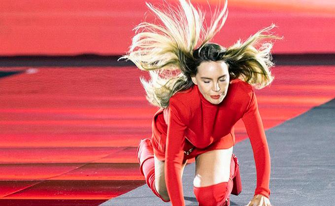 La cantante Belinda modelaba para una marca de cosméticos en la Semana de la Moda en París cuando de repente se cayó en plena pasarela. Al momento pasaba la cantante brasileña Anitta, quien la ayudó a levantarse para que continuara desfilando.