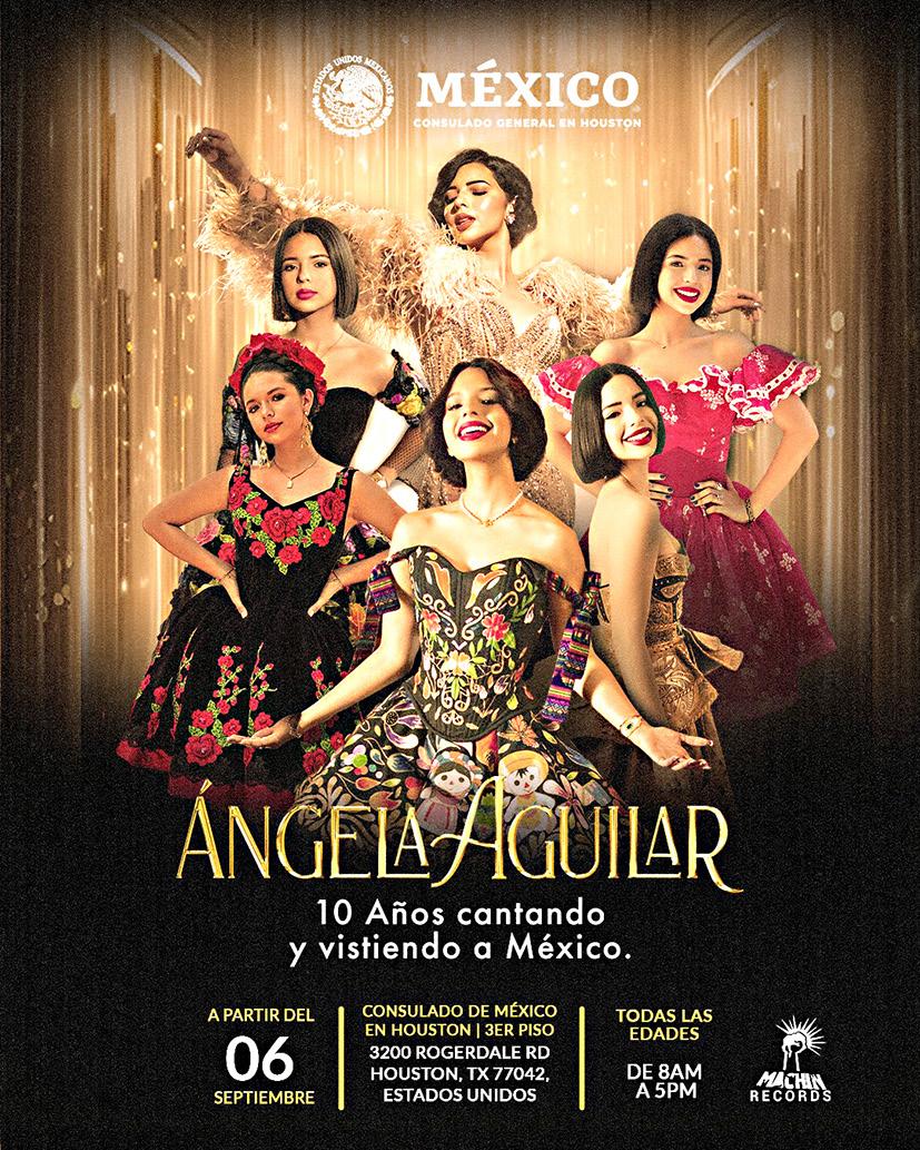 Entre las exhibiciones que tenemos que ver en este Mes de la Herencia Hispana, está la que presenta el Consulado General de México en Houston. Se trata de “Ángela Aguilar: 10 años cantando y vistiendo a México”, sí, es una exposición de la cantante de música mexicana, donde el público puede ver los coloridos y elegantes vestuarios más icónicos que ha utilizado en la pasada década Ángela Aguilar.
