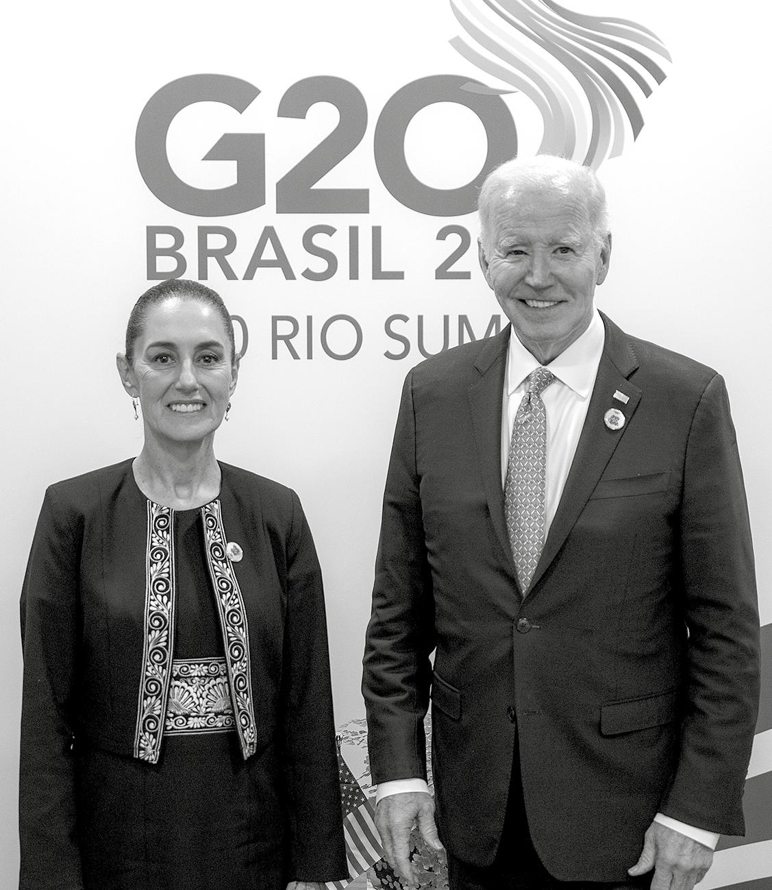 Durante la reunión G20, el foro intergubernamental de coordinación económica y financiera internacional que se realizó en Brasil. Joe Biden se tomó esta foto con Claudia Sheinbaum y la volvió a felicitar por su presidencia en México.