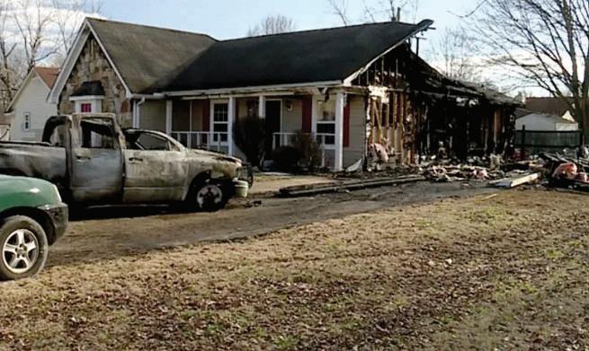 The damage left two cars burned, the carport heavily damaged and the inner walls of the home now visible on the outside.
