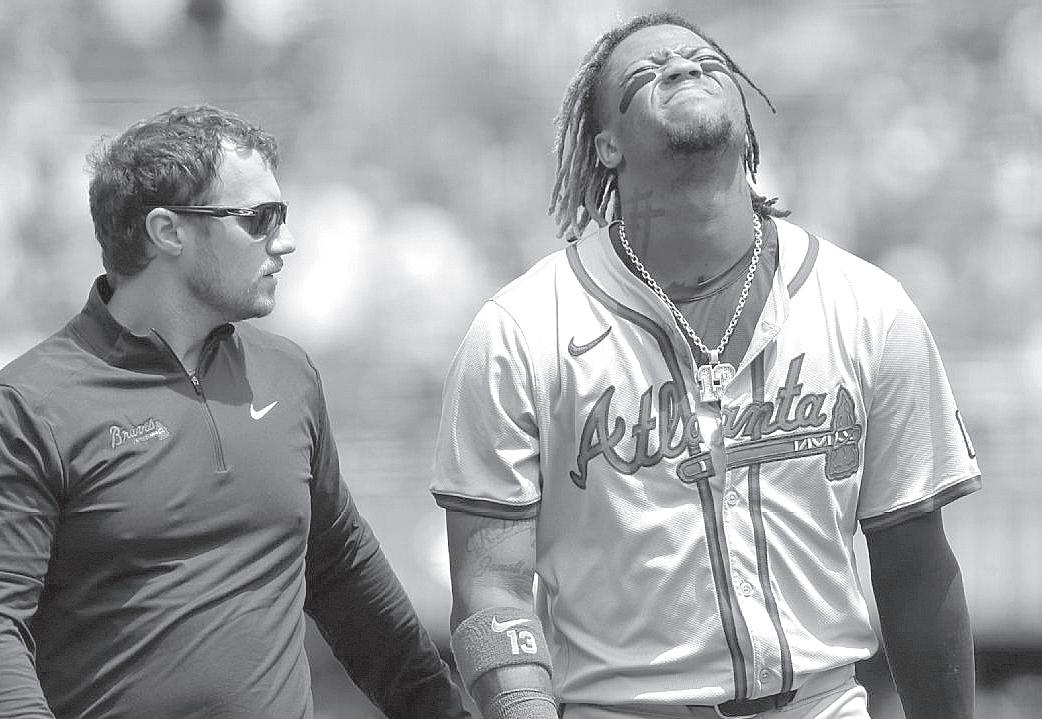 Acuña Jr, el Jugador Más Valioso de la Liga Nacional, abandonó el partido del domingo contra los Pittsburgh Pirates en la primera entrada, luego que cayera al piso intentando regresar a la segunda base.