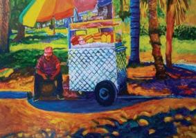 Adriana Garcia began her professional art career in graphic design, but her heart was in painting. She found an opportunity with San Anto Cultural Arts Center in the city’s Westside. In the mid 1990s Manny Castillo, the San Anto Executive Director, began recruiting artists to join him in painting murals in the Westside. Alex Rubio and Adriana Garcia were among his most notable art team members. Of her artworks Adriana explained, “I create as a way to document the lives
