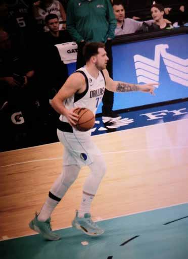 2023. Y posteriormente presentó playera No. 3 al futbolista Mitchell Taintor del campeón SAFC por haber sido elegido cómo USL CHAMPIONSHIP Defender of the Year 2022. En las fotos aparecen: Luka Doncic. Fans frente logo 50 aniversario. Keldon Johnson encestando y The Coyote.