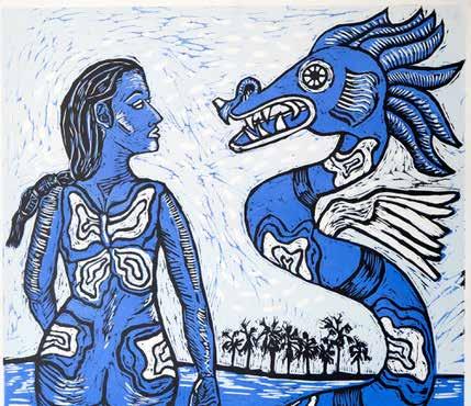 The cover art is called “Culebra Azul" Woodcut on paper, 24 x36” 2023