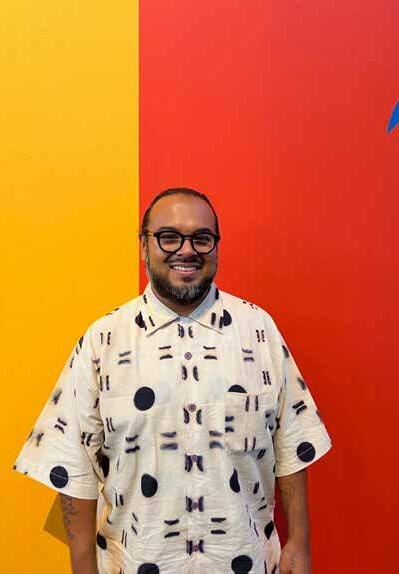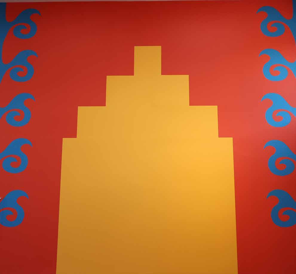 Carlos Rosales-Silva (American, born 1982), Pase Usted, 2023, Matte, latex paint, Commissioned by the San Antonio Museum of Art as part of the Gateway project series. © Carlos Rosales-Silva
