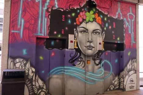 Shek’s SA International Airport elevator door mural. Photo by Ricardo Romo.