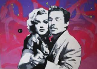 Romantic couples, heart motifs, boxers, and wrestlers evoke