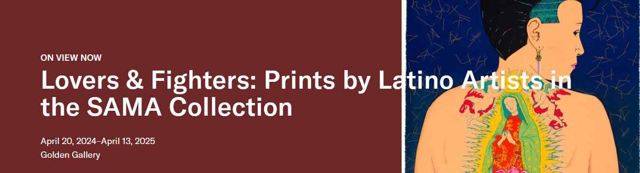 Visitors to SAMA’s exhibit Lovers & Fighters: Prints by Latino Artists will learn about some of the major artists of the Latino community. The ten prints in the exhibit are a small sample of the growing SAMA collection. Art lovers can hopefully look forward to more exhibits providing insights into the expanding