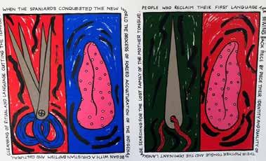 City to Chicano activism in America during the ’60s and ’70s and today’s communitybased studios, including Self Help Graphics in Los Angeles and Coronado Studio in Austin. The medium’s capacity to produce multiple prints enables accessibility to a broad audience while its ability to capture bold, graphic imagery provides a resounding platform for the artist’s voice.