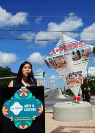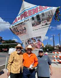 gateway for people moving in and out of downtown and encourages exploration of the city’s Westside. Both artworks celebrate the people who define the unique character of our city. The kite (papalote) features a folded La Prensa Texas newspaper - the first and oldest bilingual publication in the state of Texas (established in 1913). The vintage top (trompo) is shown as if in motion with the string wound