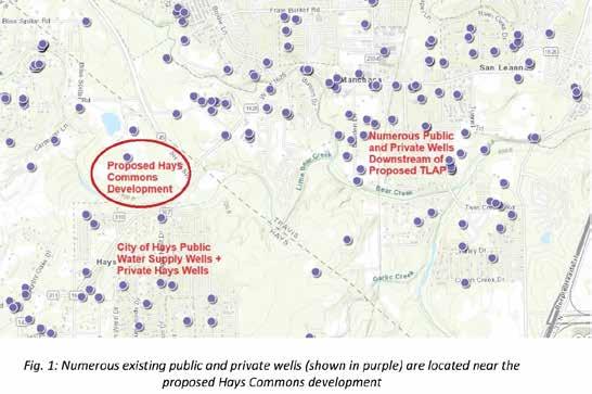 The summary of the GEAA Comments Hays Commons TLAP read, “ In summary, the high-density type of development proposed by Milestone with high impervious cover, coupled with their plan to irrigate treated sewage over the recharge zone, is ill-suited for the environmentally sensitive nature of the area. Existing development in this area respects the location over the EARZ and consists predominantly of single-family homes on one acre plus lots, with On-Site Septic Facilities (OSSFs) for wastewater. Dropping in a highdensity development with 14 acres of 70% impervious cover commercial space, plus a 32-acre treated sewage irrigation field over numerous Karst features is not only incongruous to the existing area aesthetic but will likely lead to significant groundwater contamination. We urge TCEQ to reject the Hays Commons wastewater permit application in its entirety.”