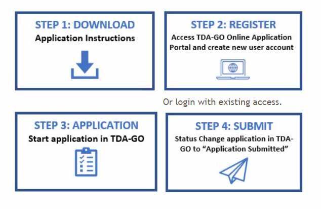 • Del 1 de septiembre al 1 de noviembre de cada año: Revisión administrativa para garantizar que las solicitudes estén completas con la información requerida. Las solicitudes enviadas antes del 1 de noviembre podrán enviar información complementaria, si es necesario. Sin embargo, TODA la información debe estar completa y enviada a la TDA antes del 1 de noviembre.