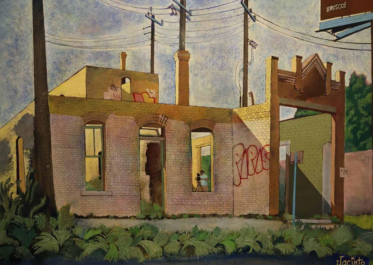 Jacinto Guevara moved to San Antonio in the early 1990s from his hometown of La Puente, California. He is a product of East LA schools and now lives in East SA. He grew up drawing on scrap pieces of paper and with the encouragement of his parents, taught himself to draw and paint. He writes: “The best of the early drawings were simple ‘studies’ of the world around me plus many fantasies. These drawings were never considered to be a product of ‘Art’. I didn't consider making ‘Art’ until 1974.”