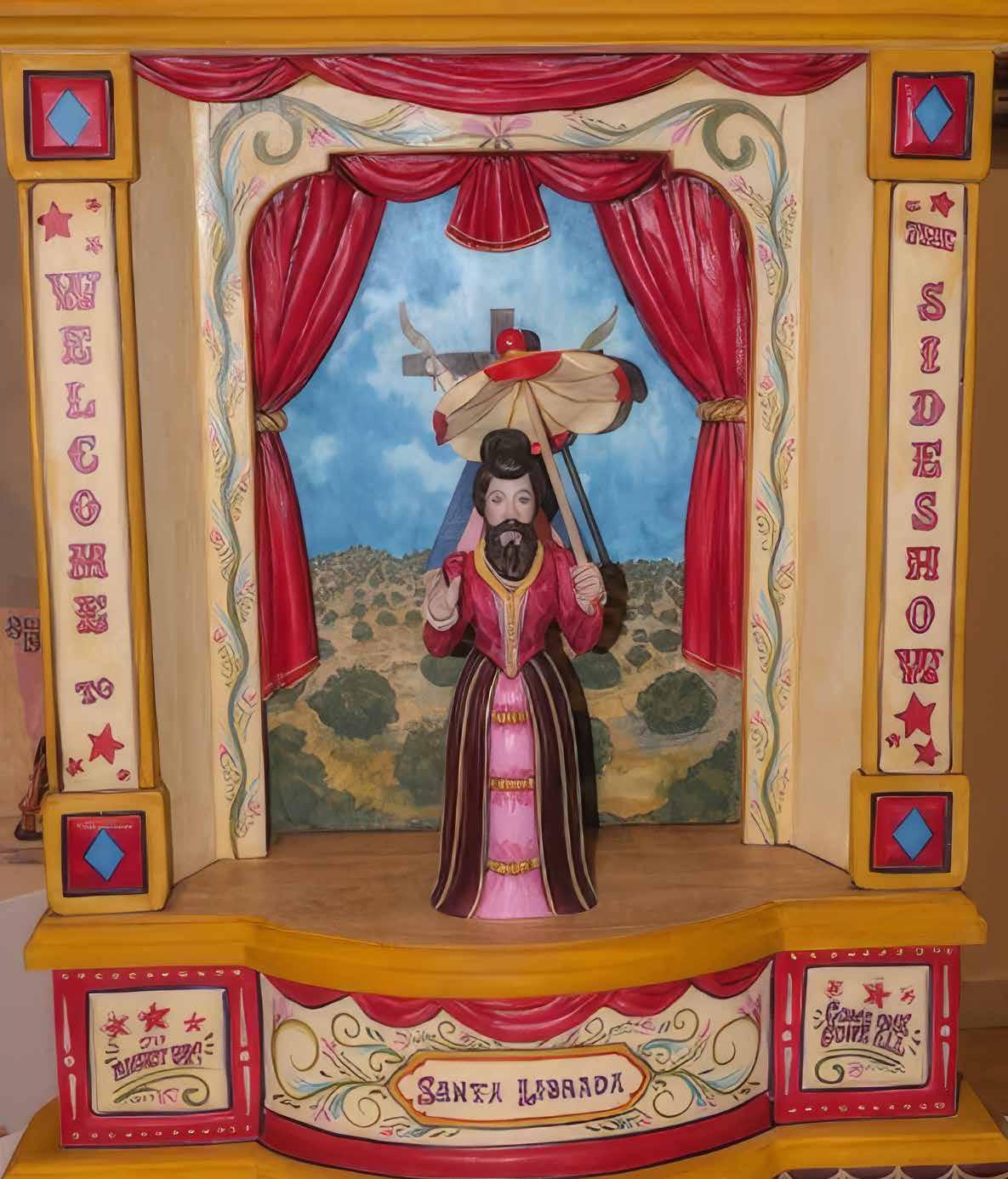 “Sideshow Saints” represent an innovative reinterpretation of the lives of Catholic saints. His presentation is theatrical and invites viewers to reassess familiar religious narratives.