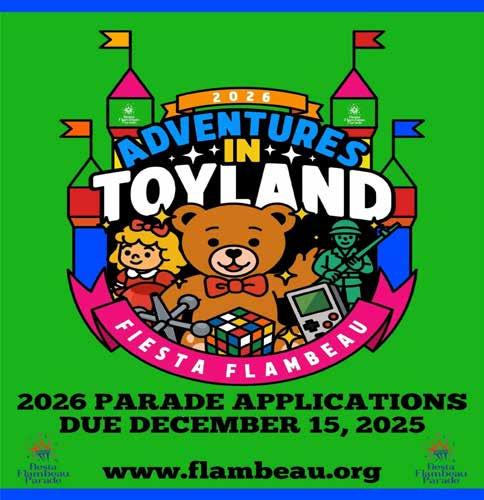 On Wednesday, August 13 at 6:30 p.m., The Skyline came alive with color and creativity for the unveiling of the 2026 Fiesta Flambeau Parade poster. This year’s theme, Adventures in Toyland, celebrates the boundless imagination and joy that toys have brought into our lives.