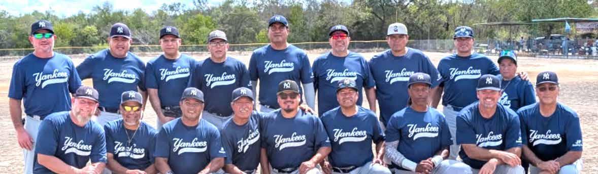 Yankees celebró en grande y Luis Velázquez, dio las gracias al coach José Montes, legendario campo corto, sus jugadores: Alan Mow, Kelly Skeens, Doug Rosini. Kenneth McMullen, Derrick Hardeman. Juan Martínez. Manny Sosa, Gilbert Salazar, Moisés Cervantes, Greg Herrera, Abe Vargas. Tony Montes, Oscar Montes, Erick Montes “El Capitán”. Manny Montes, Jaime Guerrero, Pat Hernández y Willie Martínez. (Foto de Yankees es cortesía de Sergio Torres).