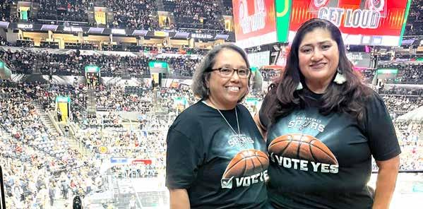 En el partido de pretemporada Spurs vs Utah Jazz, las amigas y seguidoras de Spurs, Linda Garza y Letty Bustos (Foto