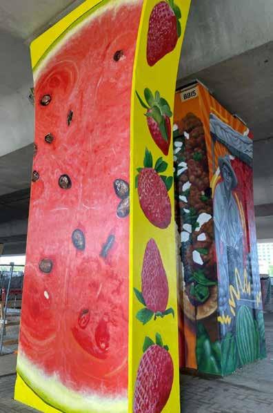 recognition with shows at the Presa House Gallery and participation in the “Soy de Tejas” exhibitions across Texas. Her murals at the San Antonio International Airport, Blue Star Arts Complex, and along North St. Mary’s Strip contribute to her reputation for vibrant public art that celebrates San Antonio’s culinary and cultural heritage.