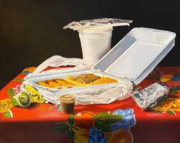 Sanchez describes food in her work as a powerful conduit for memory, community, and identity, using it to tell stories from her own life and the larger Mexican-American experience in San Antonio. Her meticulous attention to color, texture, and detail invites viewers to engage not just visually but emotionally with the cultural richness of her subjects. Represented by Ruiz-Healy Art Gallery,