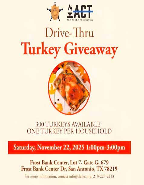 \La Prensa Texas was honored to serve as the exclusive media outlet for the annual Turkey Giveaway hosted by Commissioner Tommy Calvert and the Deputy Sheriff’s Association of Bexar County at the Frost Bank Center. The event brought together volunteers, local leaders, and families from across the community in a celebration of generosity and Thanksgiving spirit.