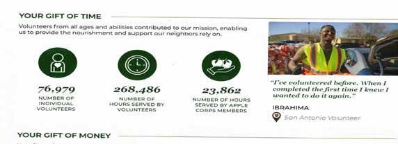 collaborates to nourish bodies and strengthen communities across Southwest Texas. In this way, the San Antonio Food Bank illustrates the transformative power of communitydriven philanthropy dedicated to eliminating hunger and building a food-secure future where everyone has equitable access to nutritious food.