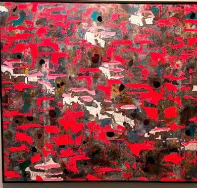 Fernandez identifies as a mixedmedia collage artist, working primarily in painting, public art, and community - engagement projects. He frequently works in series, drawing on mathematics, technology, border culture, Navajo textiles, mythology, and community life. Figurative and abstract elements interweave as metaphors for human interaction